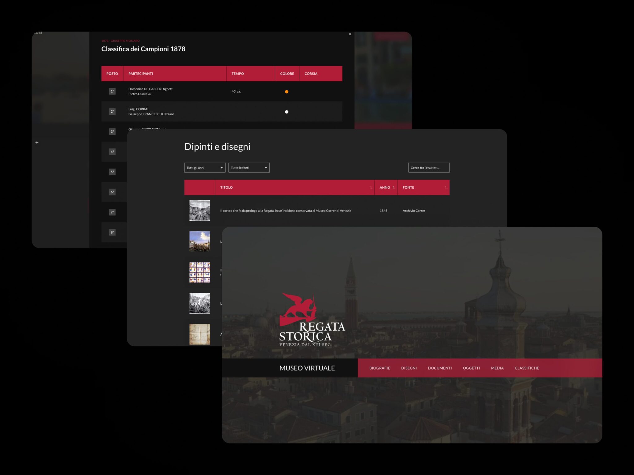 Sito ufficiale e museo virtuale per la Regata Storica di Venezia, tra le più antiche competizioni di voga al mondo. Due piattaforme interconnesse: il portale dell'evento e un museo digitale che conserva l'archivio storico di manifesti, cartoline e cronache.