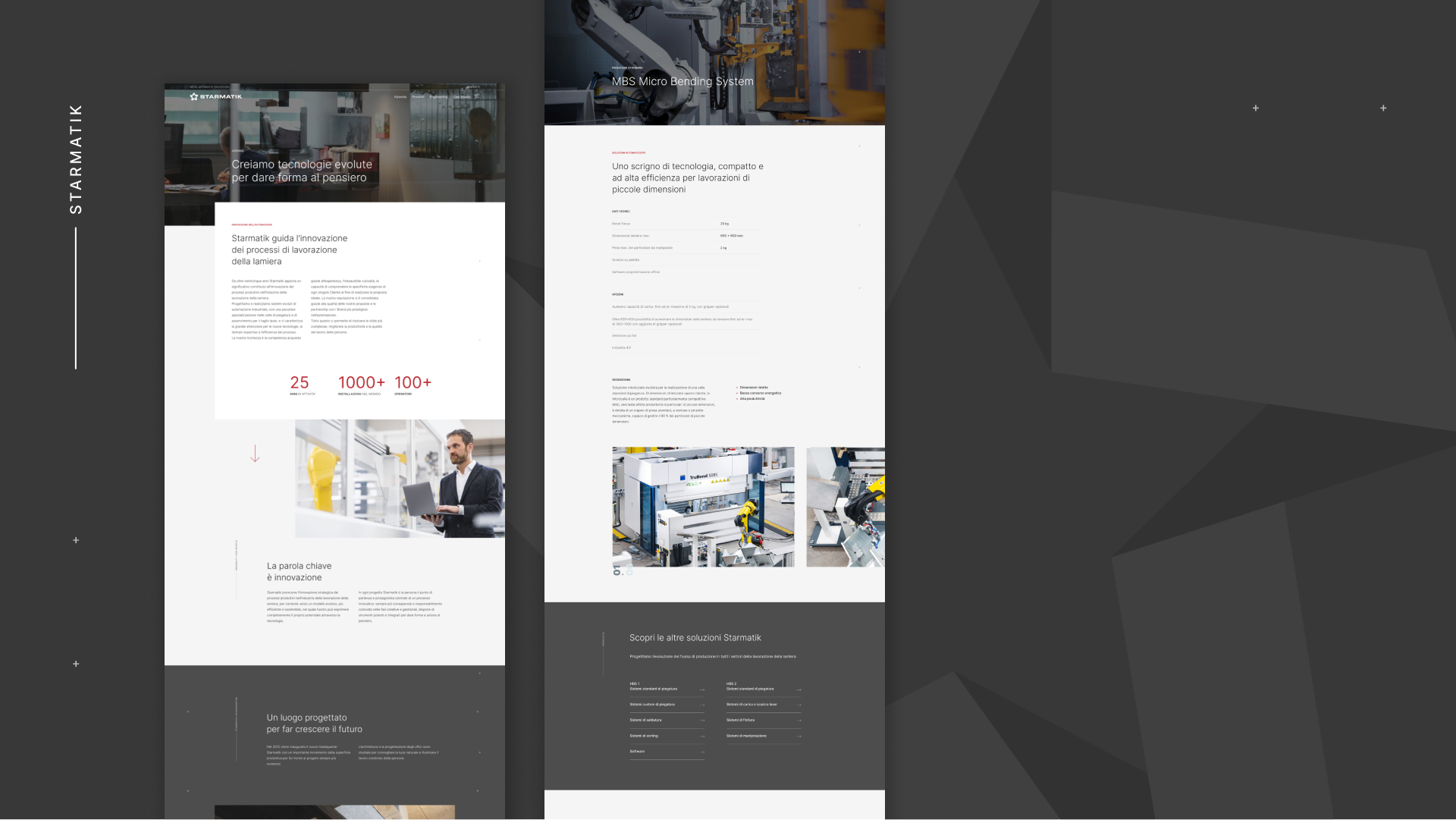 Starmatik aveva bisogno di un sito che funzionasse come strumento di pre-vendita internazionale: presentare celle robotizzate e sistemi di automazione con la profondità tecnica che il mercato richiede, in italiano e in inglese, con un'interfaccia che trasmettesse affidabilità e innovazione.