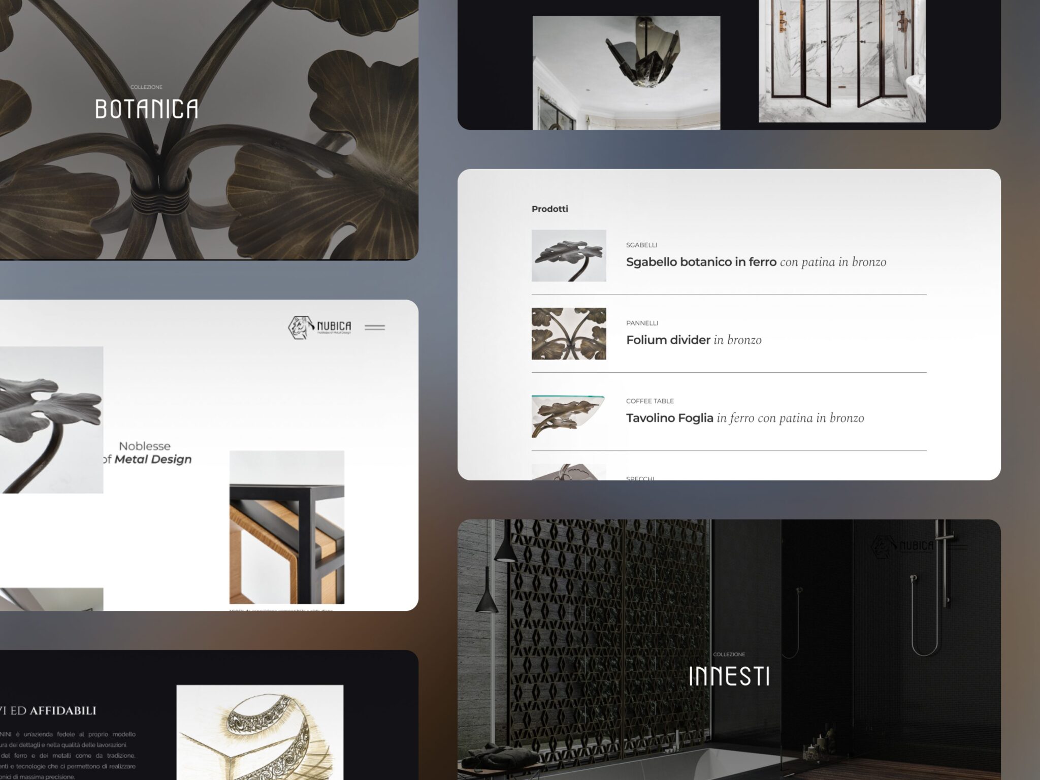 VilliZanini aveva bisogno di due piattaforme digitali distinte ma coerenti. Il sito istituzionale per il ferro battuto d'arte e le collaborazioni con studi di architettura internazionali. Nubica come nuovo marchio per mobili e oggetti decorativi di alta gamma, con naming, identità visiva e presenza web propria.
